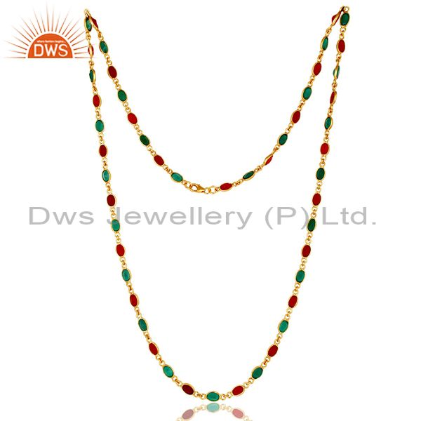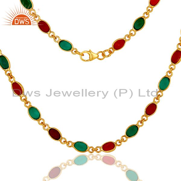 14K Yellow Gold Plated Sterling Silver Green Onyx And Red Onyx Chain Necklace