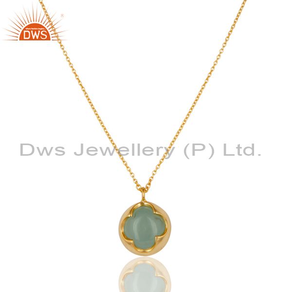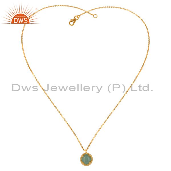 14K Yellow Gold Plated Sterling Silver Handmade Dyed Chalcedony Chain Pendant