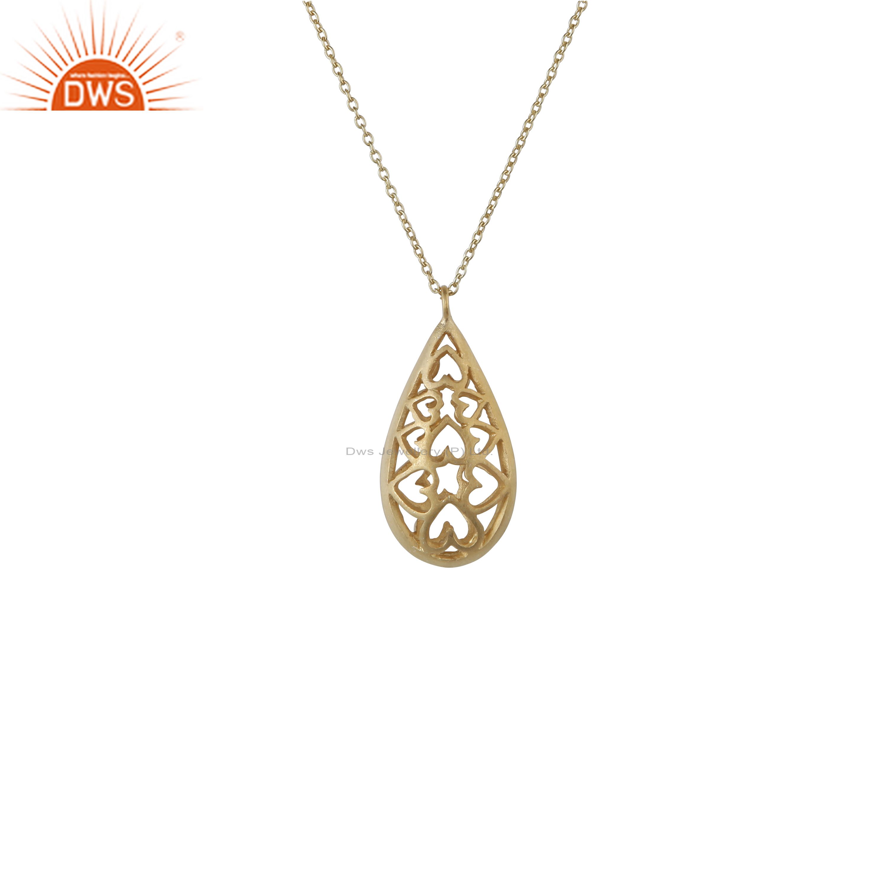 14K Yellow Gold Plated Sterling Silver Heart Designer Drop Pendant With Chain