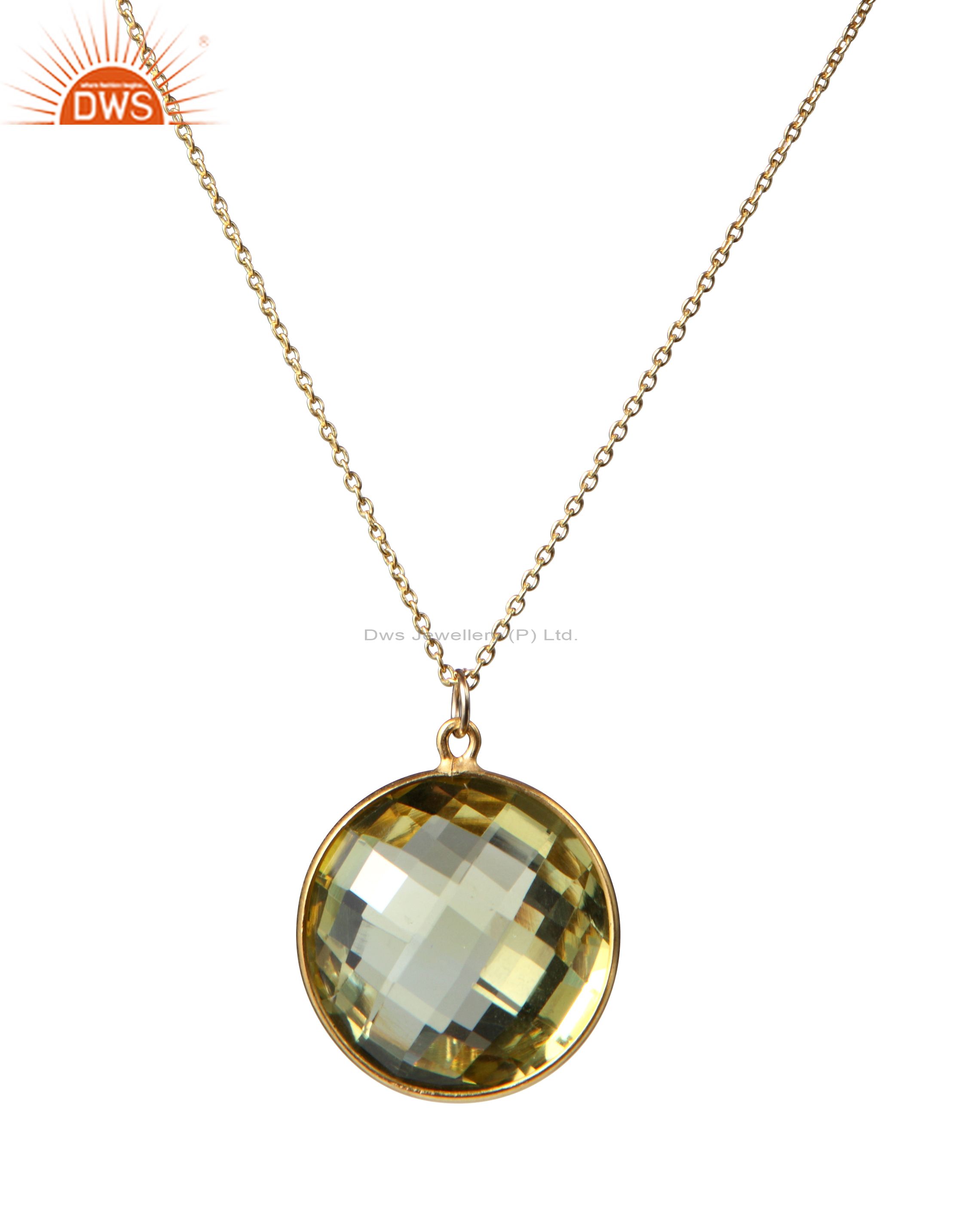 14K Yellow Gold Plated Sterling Silver Lemon Topaz Bezel Set Pendant With Chain