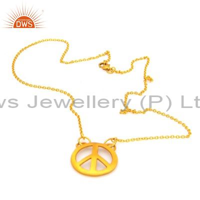 14K Yellow Gold Plated Sterling Silver Peace Sign Pendant With Chain