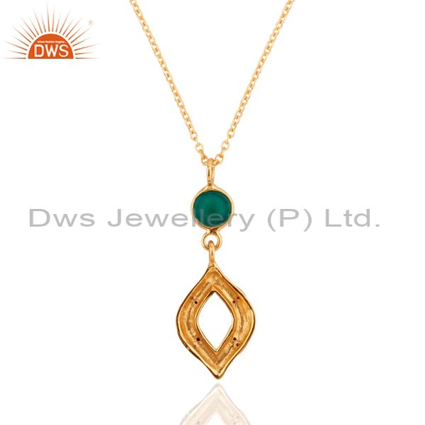 16" Chain Necklace Faceted Green Onyx 18K Gold Gp 925 Sterling Silver Ruby Stone