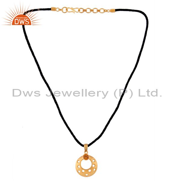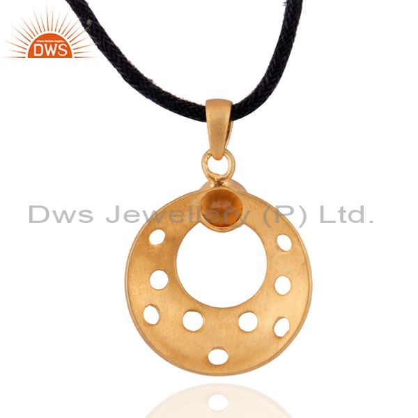 16" Cord Necklace Matte Finish 18K Gold Gp Sterling Silver Hollow Round Circle P