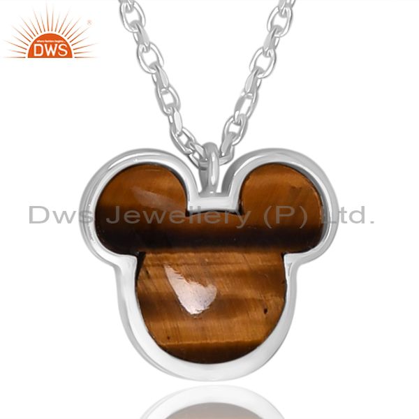 16 Inch Chain And Extension With Tiger Eye Mickey Pendant For Kids