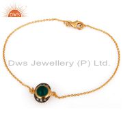 18Ct Gold Plated Plated On Sterling Silver Pendant With Green Onyx Gemstone