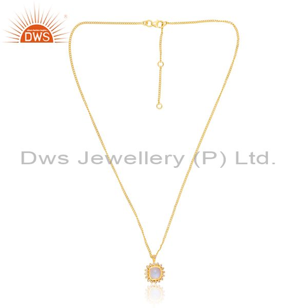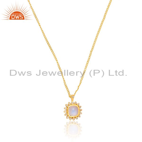 18K Gold Cz And Rainbow Moon Stone Set Pendant And Necklace