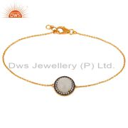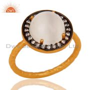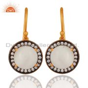 18K Gold Over 925 Silver White Moonstone & White Zircon Pendant With 16" Chain