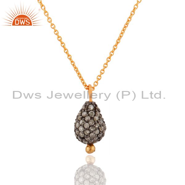 18k Gold Over 925 Sterling Silver Natural Diamond Pave Set Pendant Chain