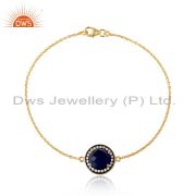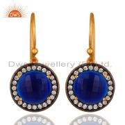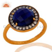 18K Gold Over Silver Blue Corundum Checkerboard Gemstone & Cz Pendant Necklace