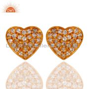 18K Gold Over Sterling Silver White Topaz Heart Symbol Pendant With Chain