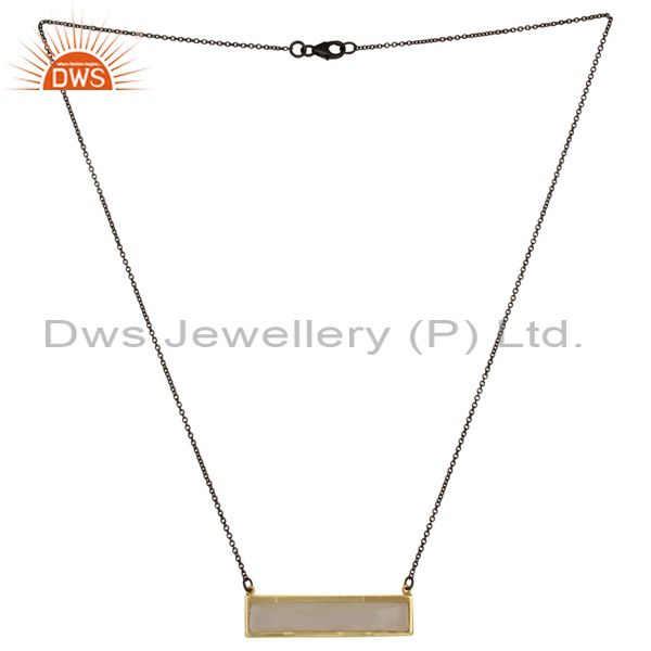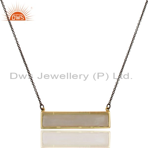 18K Gold Plated & Black 925 Silver Rainbow Moonstone Chain Pendant Necklace