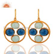 18K Gold Plated 925 Sterling Silver Aqua Chalcedony & Blue Corundum Pendant