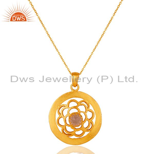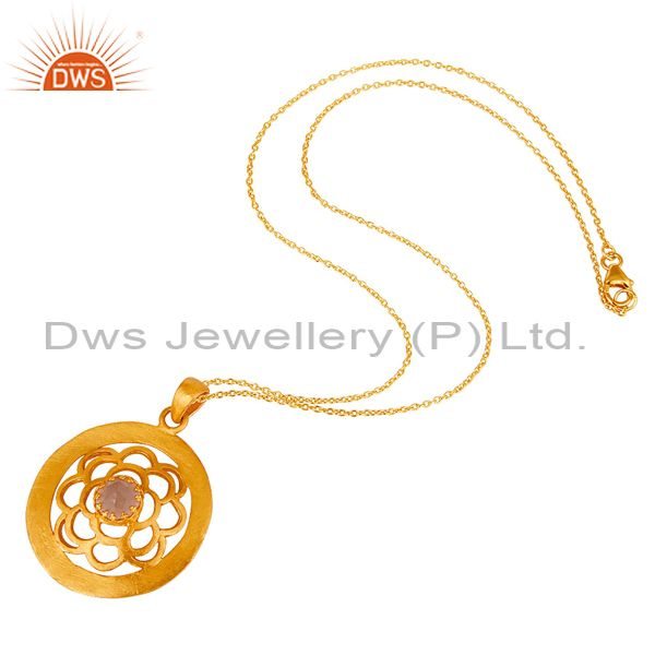 18K Gold Plated 925 Sterling Silver Beautiful Rose Quartz Design Style Pendant