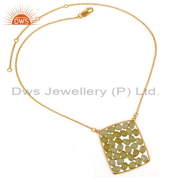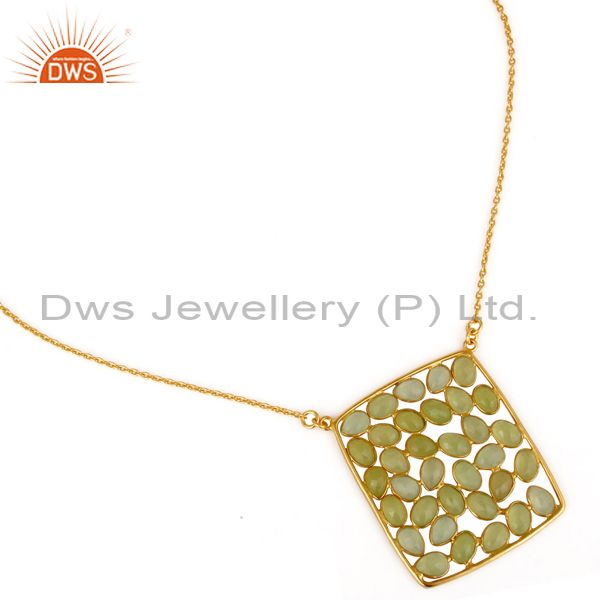 18K Gold Plated 925 Sterling Silver Dyed Chalcedony 20" Chain Pendant Necklace