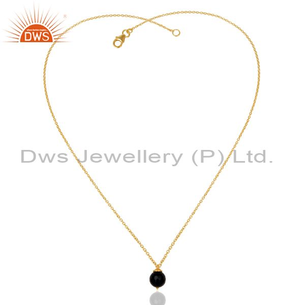 18K Gold Plated 925 Sterling Silver Faceted Black Onyx Chain Pendant Necklace