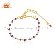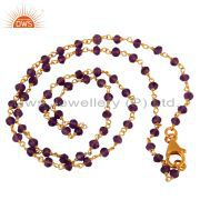 18K Gold Plated 925 Sterling Silver Natural Amethyst Gemstone Beads Necklace