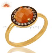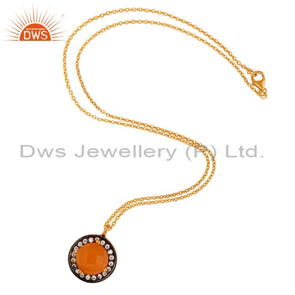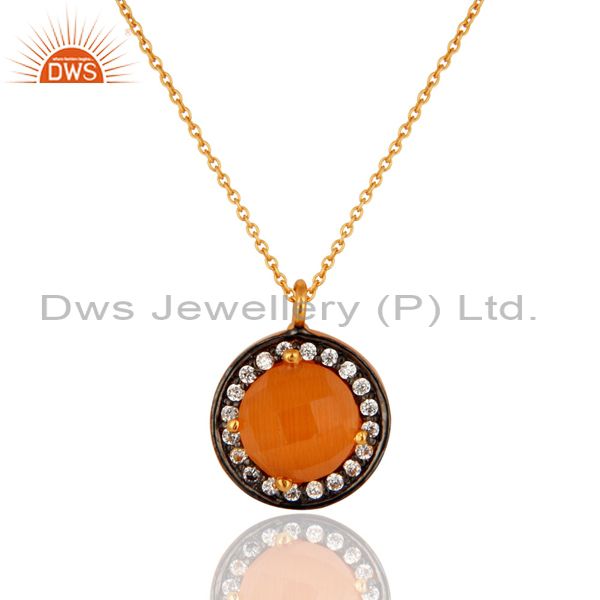18K Gold Plated 925 Sterling Silver Peach Moonstone & White Zircon Pendant Chain