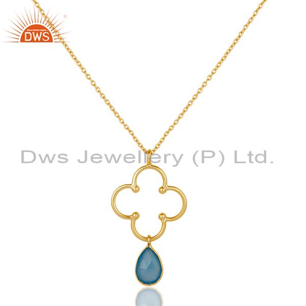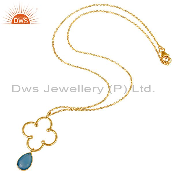 18K Gold PLated 925 Sterling Silver Set Pendant Chain Necklace with Chalcedony