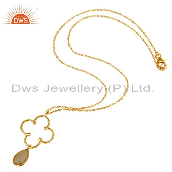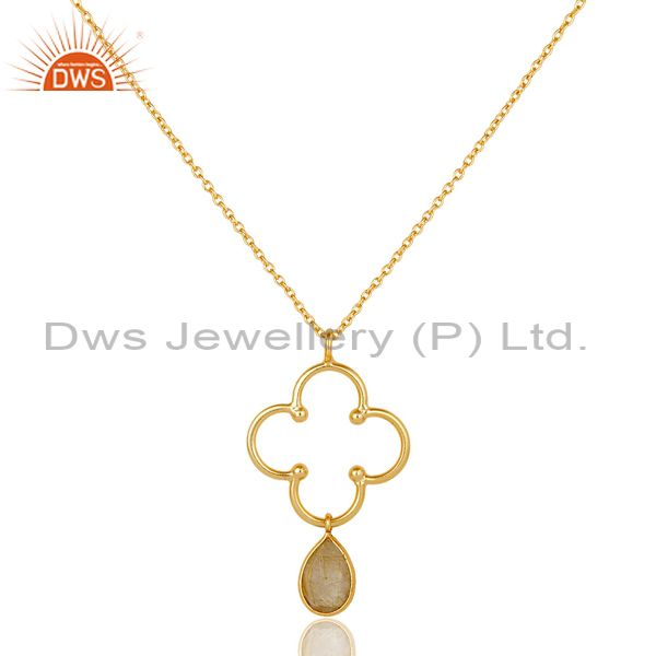 18K Gold PLated 925 Sterling Silver Set Pendant Chain Necklace with Routile