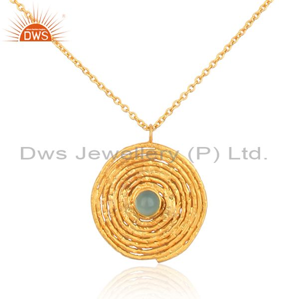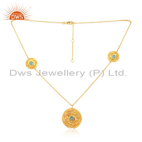18k Gold Plated Designer Silver Aqua Chalcedony Gemstone Necklace