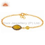 18K Gold Plated Faceted Yellow Moonstone & Cz Sterling Silver Pendant 16" Chain