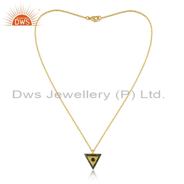 18k Gold Plated Green Zircon Rose Cut Bezel Designer Look Chain Brass Pendant