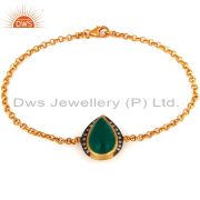 18K Gold Plated Over 925 Sterling Silver Green Onyx Pendant Necklace With Chain