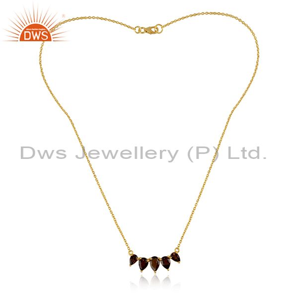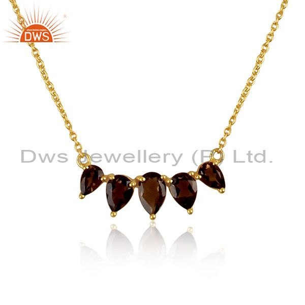 18K Gold Plated Silver Smoky Quartz Gemstone Necklace