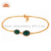 18K Gold Plated Solid 925 Sterling Silver Green Onyx & Cz Beautiful Drop Pendant