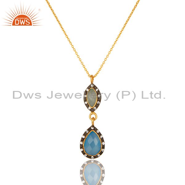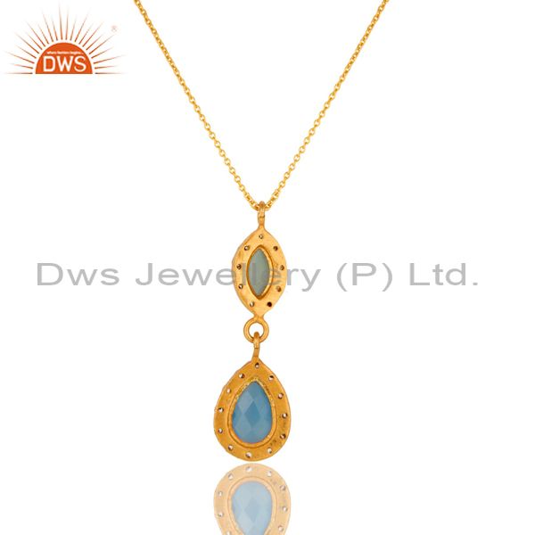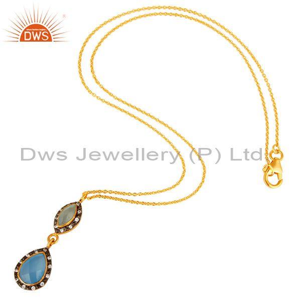 18K Gold Plated Sterling Silver Aqua Chalcedony Gemstone Pendant With Chain