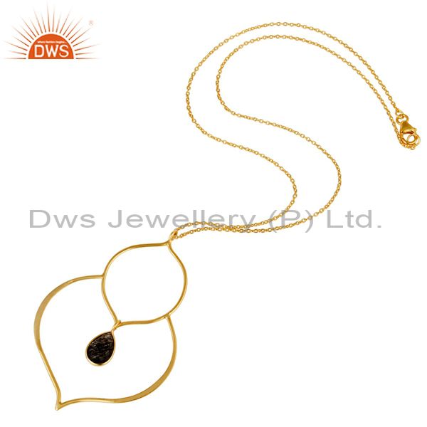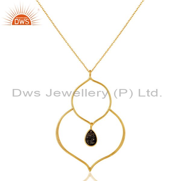 18K Gold PLated Sterling Silver Bazel Set Pendant Chain Necklace with Routile