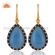 18K Gold Plated Sterling Silver Blue Chalcedony And Cz Drop Pendant With Chain