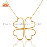 18K Gold Plated Sterling Silver Brush Finish Double Heart Pendant Necklace