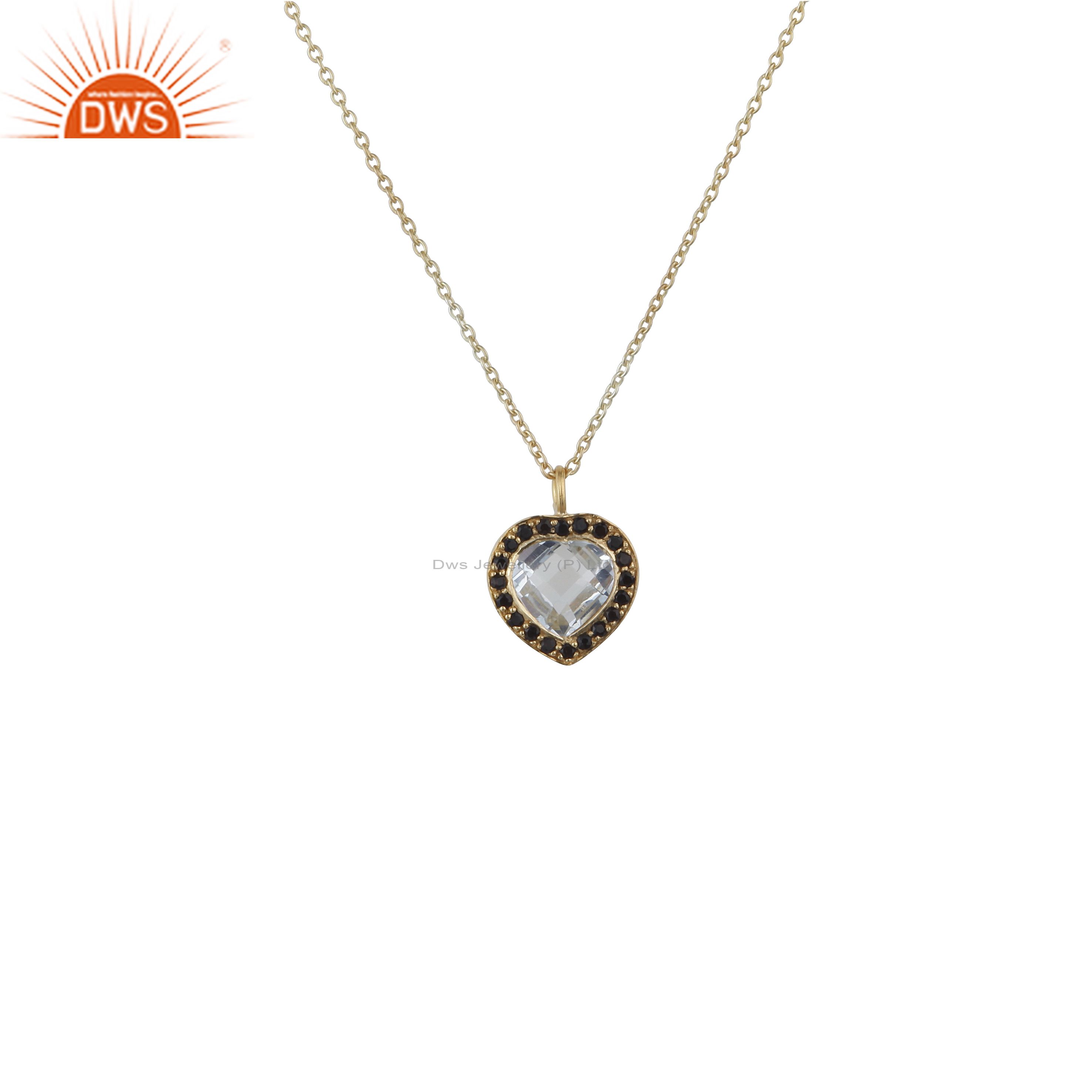 18K Gold Plated Sterling Silver Crystal Quartz And White Topaz Pendant Necklace