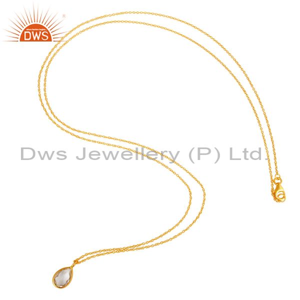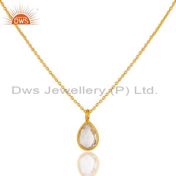 18K Gold Plated Sterling Silver Crystal Quartz Bezel Set Drop Pendant With Chain