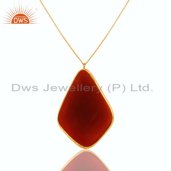 18K Gold Plated Sterling Silver Faceted Red Onyx Bezel Set Pendant With Chain
