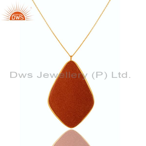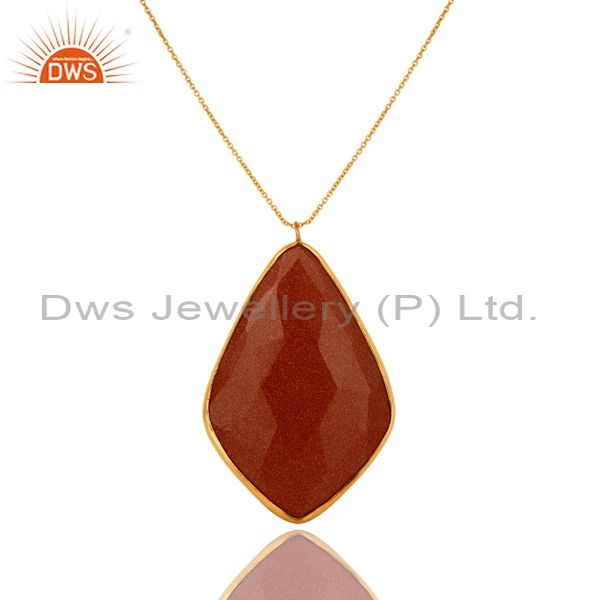 18K Gold Plated Sterling Silver Faceted Sand Stone Bezel Set Pendant With Chain