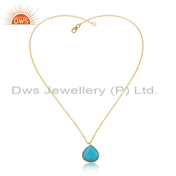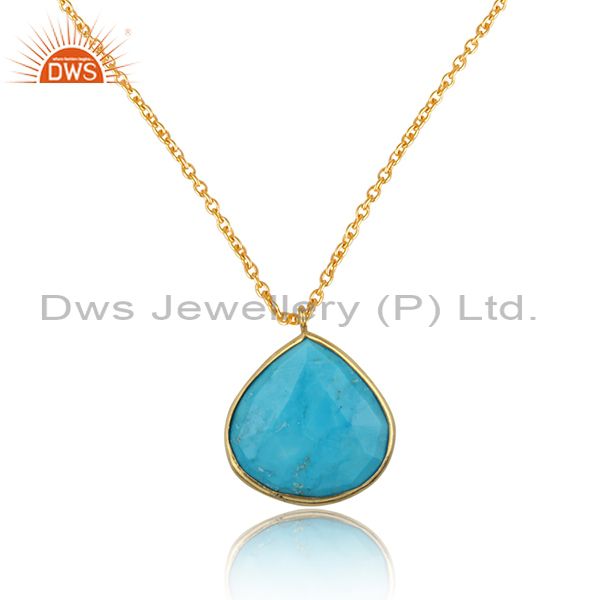 18K Gold Plated Sterling Silver Faceted Turquoise Bezel Set Pendant With Chain