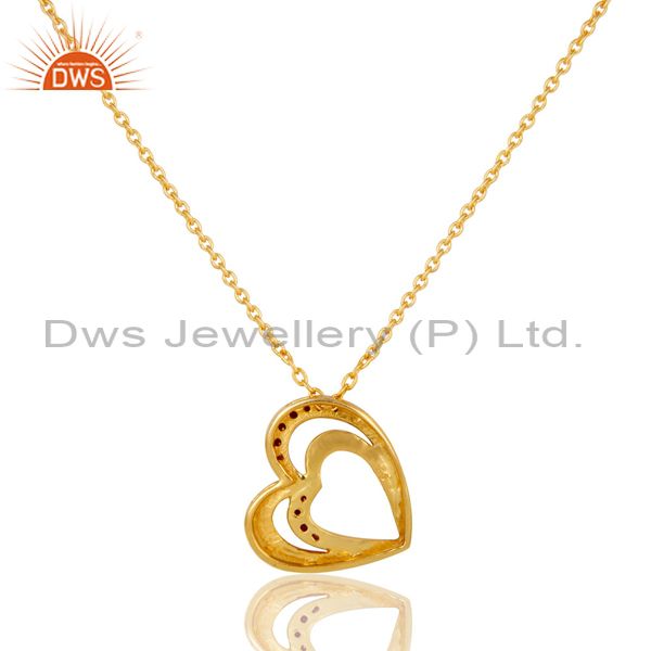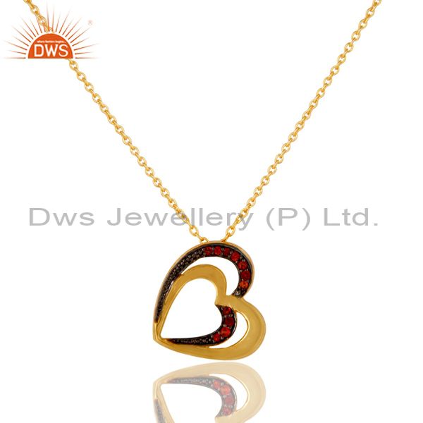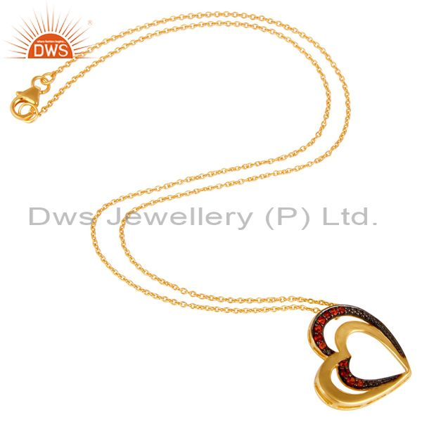 18K Gold Plated Sterling Silver Garnet Heart Shape Pendant Necklace
