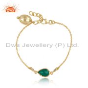 18K Gold Plated Sterling Silver Green Onyx And White Topaz Designer Pendant
