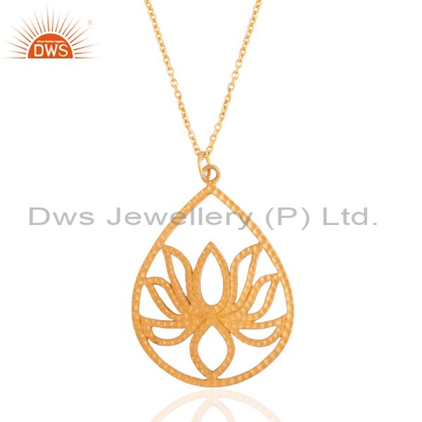 18K Gold Plated Sterling Silver Hammered Lotus Pendant With Chain Necklace