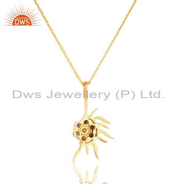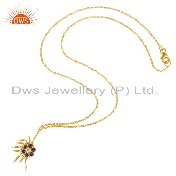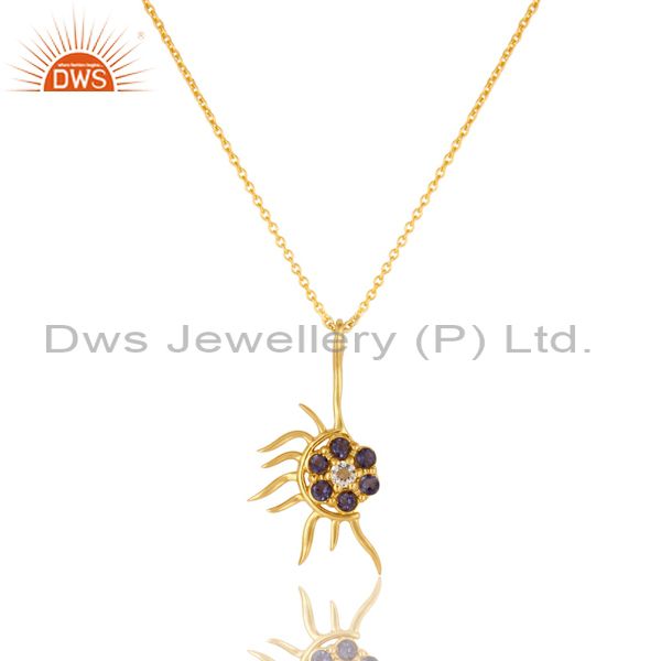 18K Gold Plated Sterling Silver Iolite And White Topaz Designer Pendant Necklace