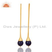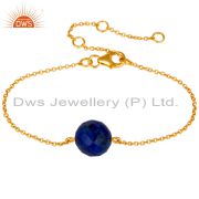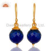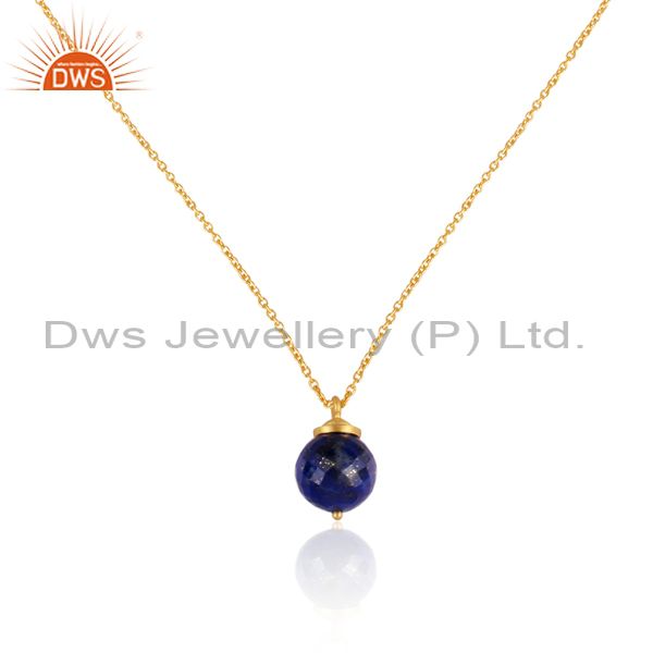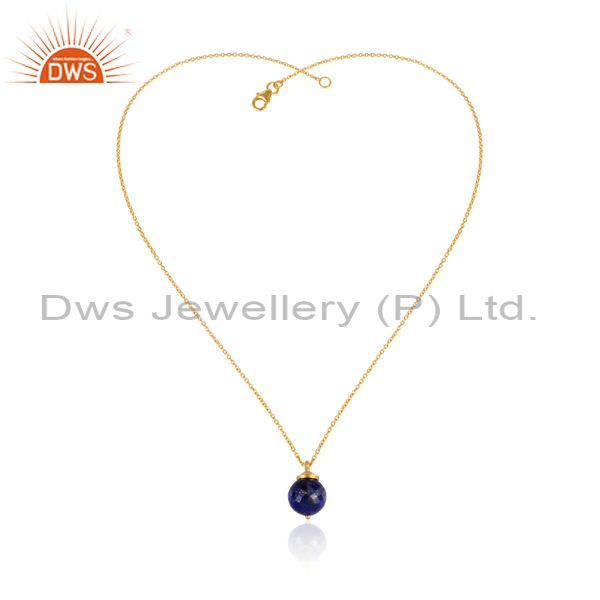 18K Gold Plated Sterling Silver Lapis Faceted Designer Pendant With Chain