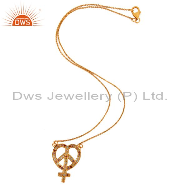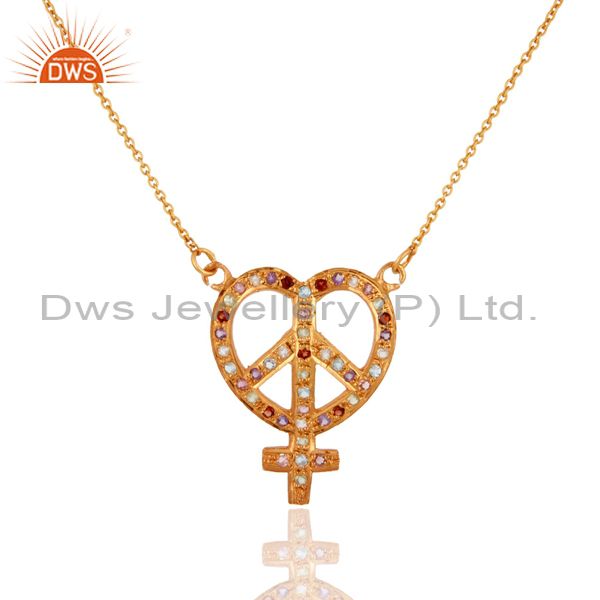 18K Gold Plated Sterling Silver Mix Gemstone Heart Ankh Peace Sign Pendant Chain