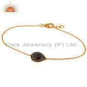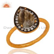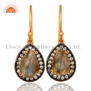18K Gold Plated Sterling Silver Natural Labradorite And Cz Pendant With Chain