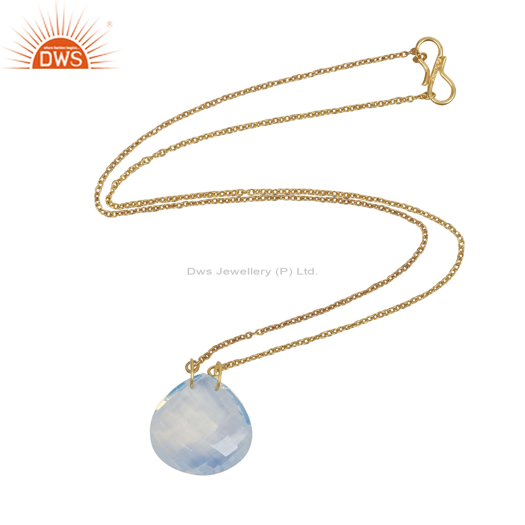 18K Gold Plated Sterling Silver Opalite Gemstone Pendant Chain Necklace