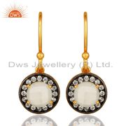 18K Gold Plated Sterling Silver Prehnite Chalcedony And Cz Drop Pendant With Chain