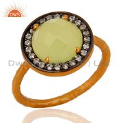 18K Gold Plated Sterling Silver Prehnite Chalcedony Gemstone Pendant With Chain