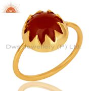 18K Gold Plated Sterling Silver Red Onyx Gemstone Pendant Necklace Jewelry