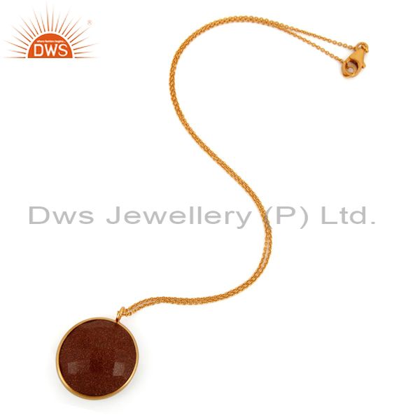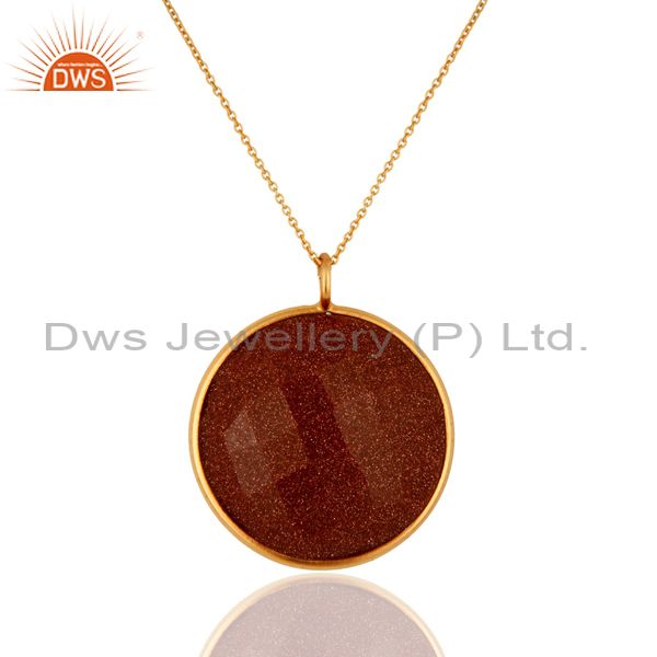 18K Gold Plated Sterling Silver Red Sun Sitara Bezel Set Pendant With Chain